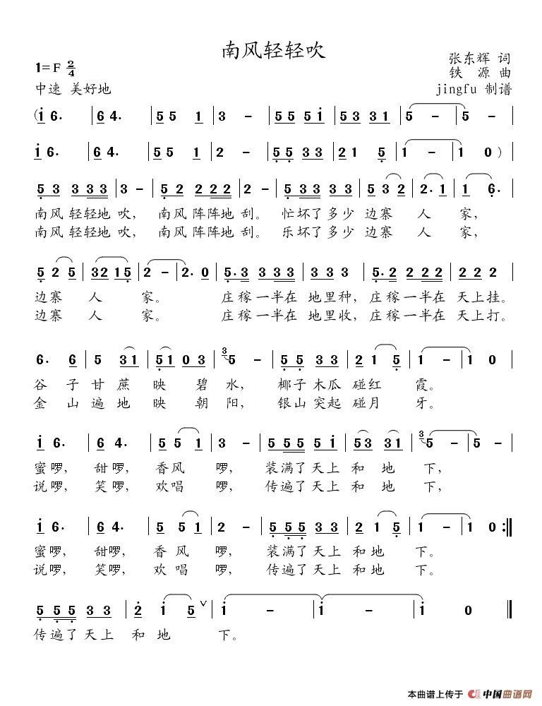 关于《南风轻轻吹》曲谱的评论