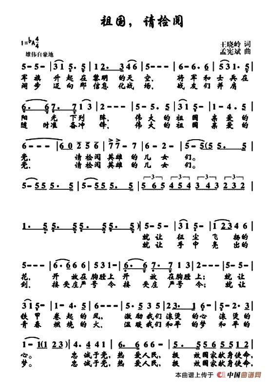 关于《祖国请检阅》曲谱的评论