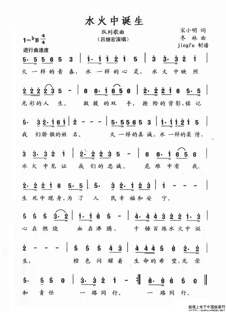关于《水火中诞生》曲谱的评论