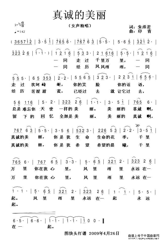 关于《真诚的美丽》曲谱的评论