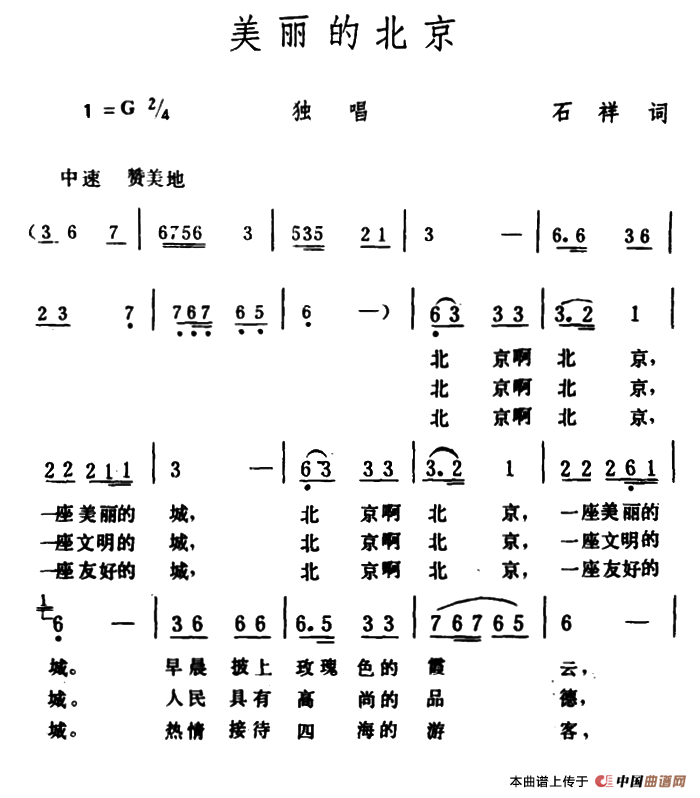 关于《美丽的北京》曲谱的评论