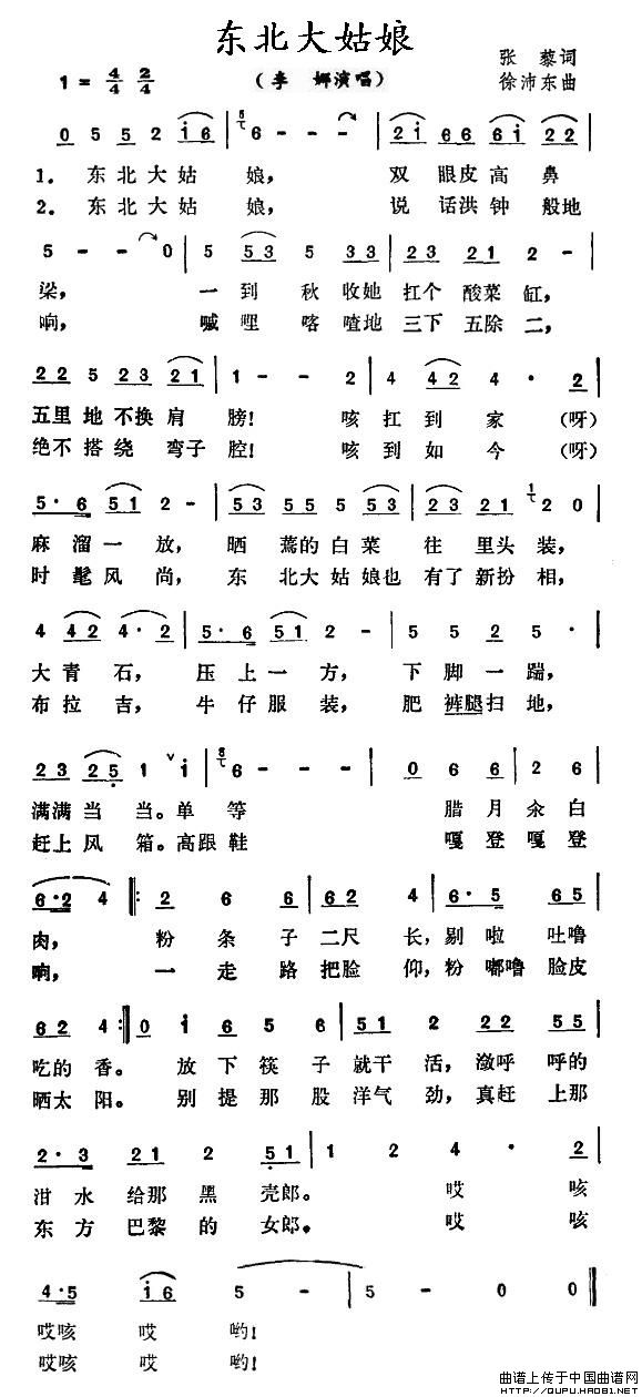关于《东北大姑娘》曲谱的评论