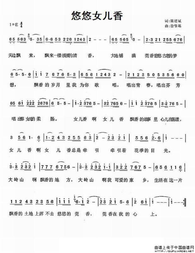 关于《悠悠女儿香》曲谱的评论