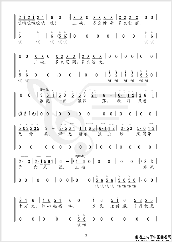 提示:在曲谱图片上单击右键,选择“图片另存为...”即可将曲谱保存到您的电脑中,打印时候可将图片插入到WORD中,调整合适大小打印即可。