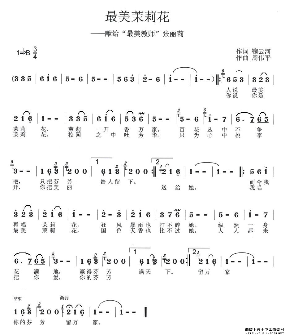 关于《最美茉莉花——献给“最美教师”张丽莉》曲谱的评论