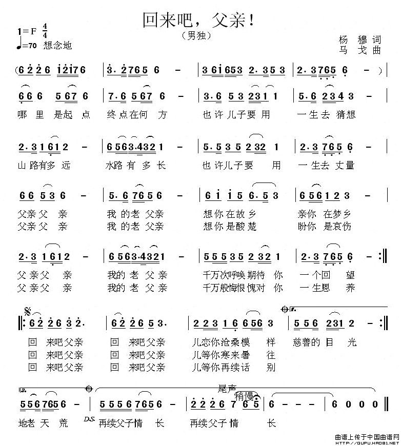 关于《回来吧,父亲!》曲谱的评论
