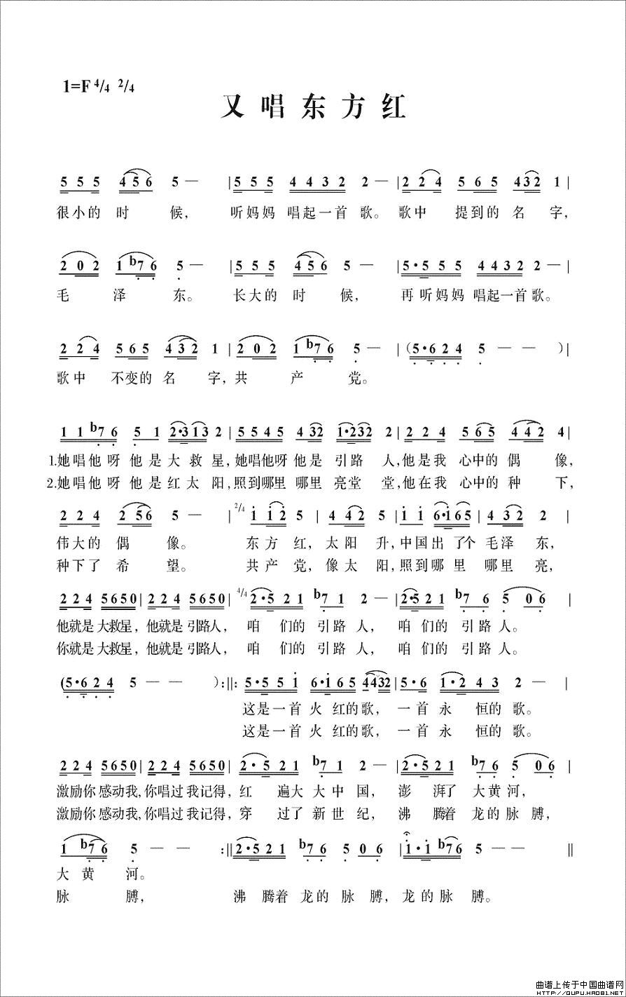 关于《又唱东方红》曲谱的评论