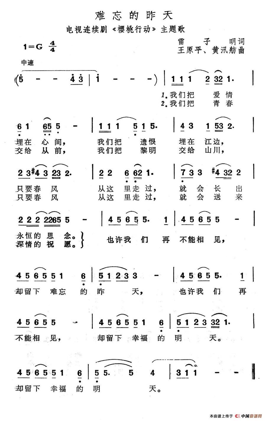 关于《难忘的昨天》曲谱的评论