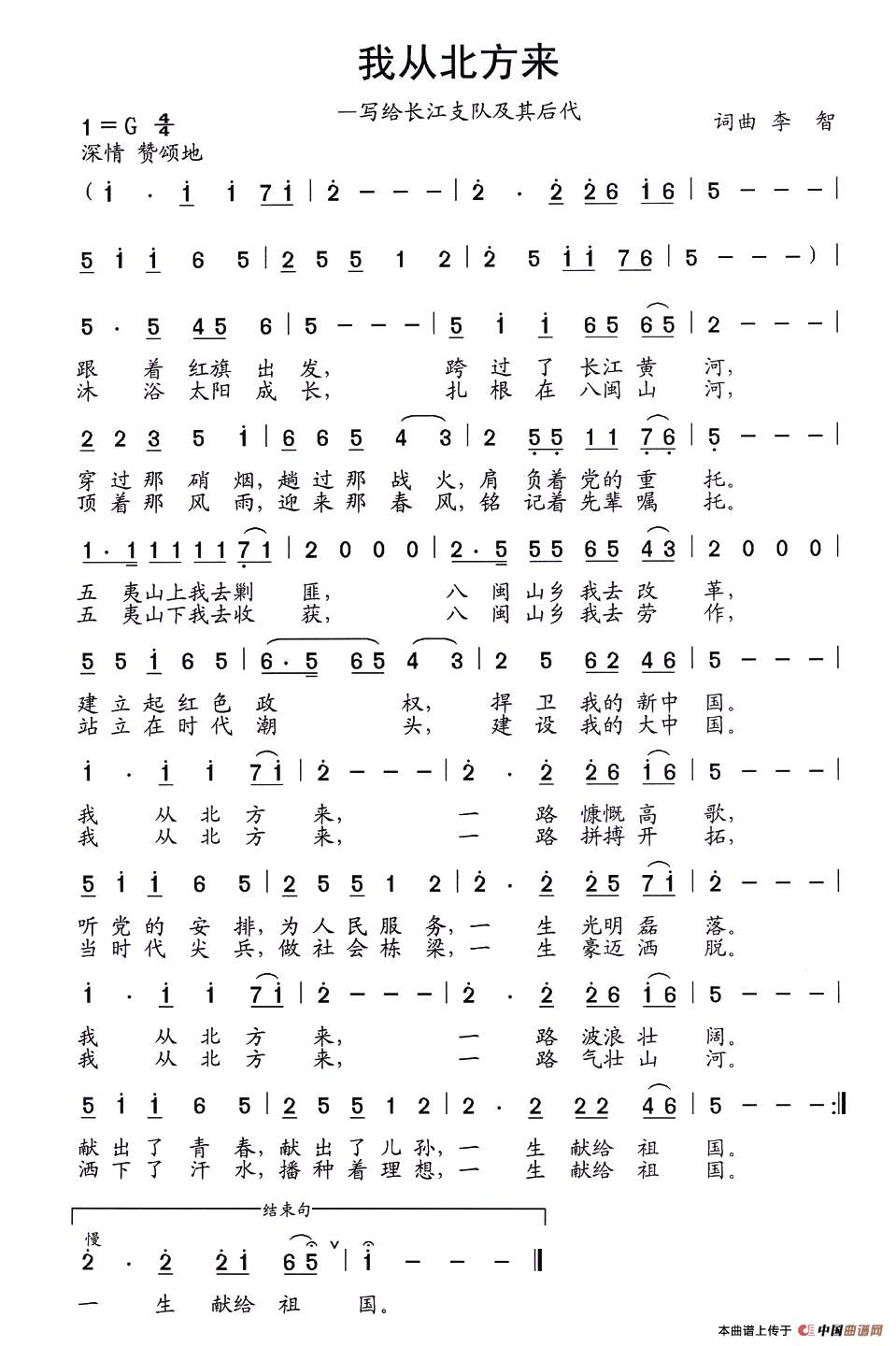 关于《我从北方来》曲谱的评论