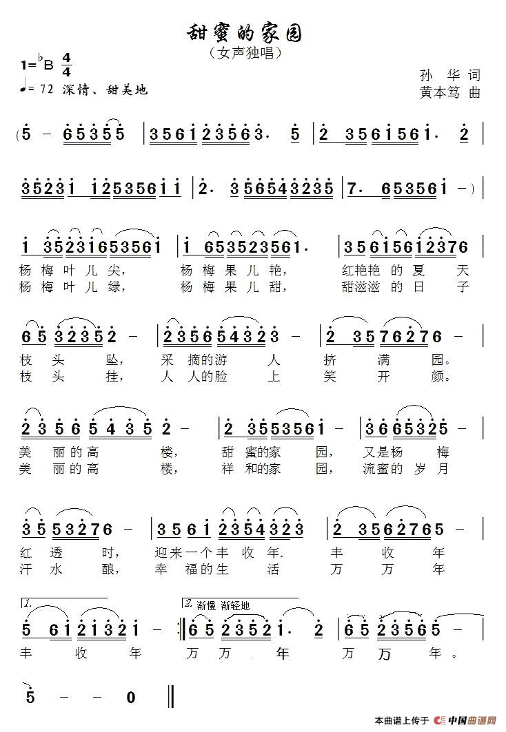关于《甜美的家园》曲谱的评论