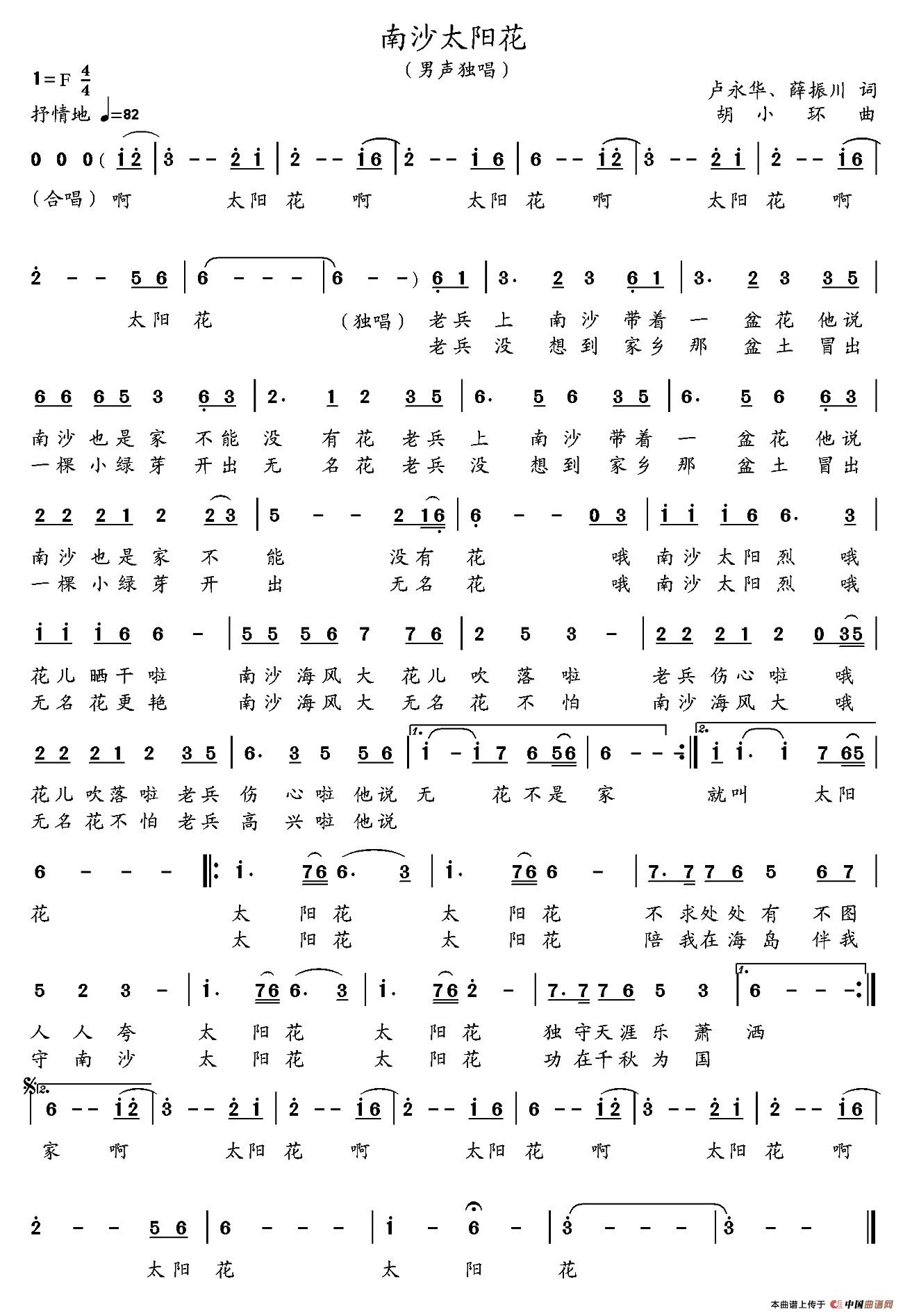 关于《南沙太阳花》曲谱的评论