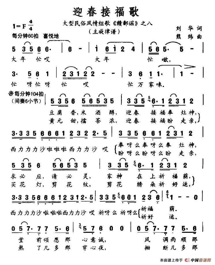 关于《迎春接福歌》曲谱的评论