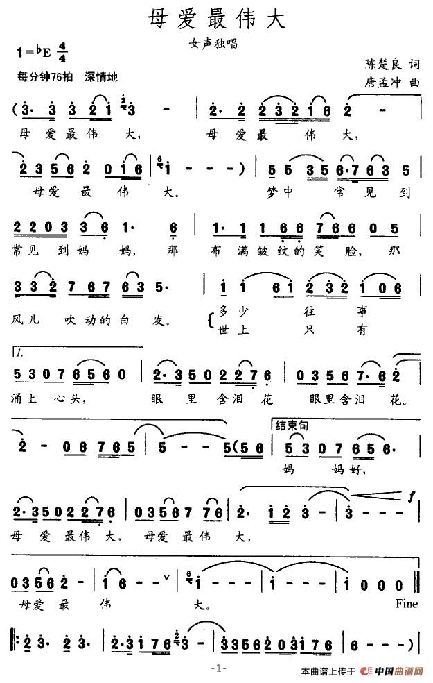 关于《母亲最伟大》曲谱的评论