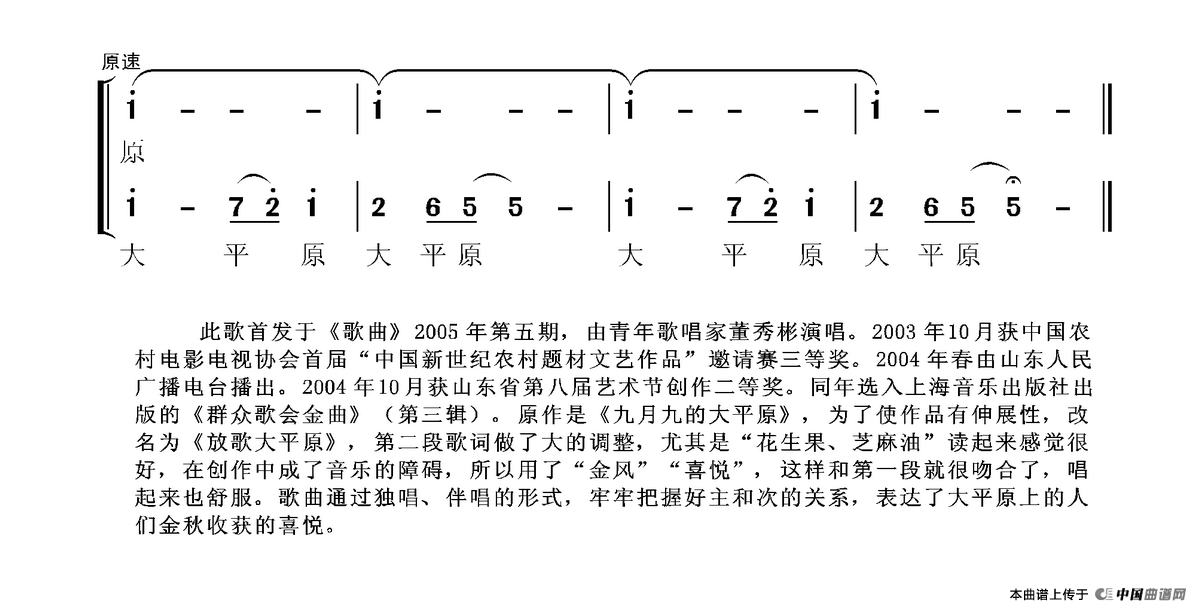 关于《放歌大平原》曲谱的评论