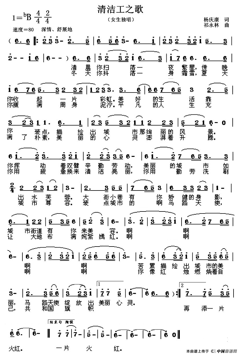 关于《清洁工之歌》曲谱的评论