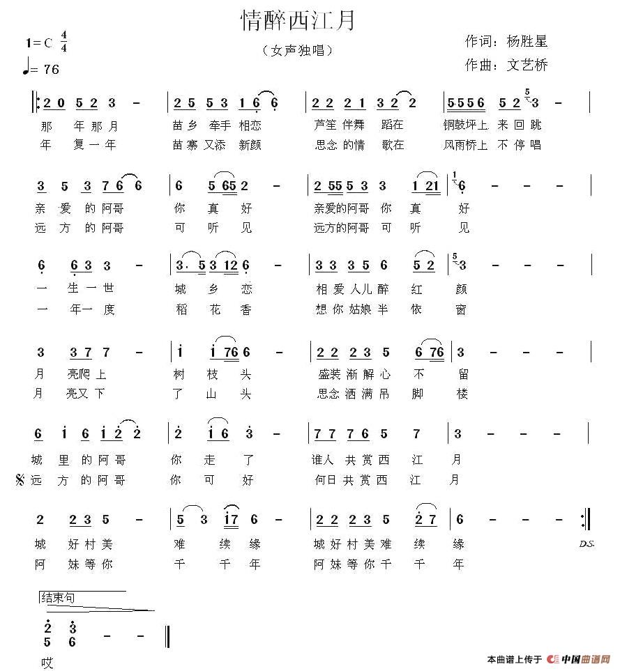 作词:杨胜星 作曲:文艺桥 格式:简谱 来源:作者上传《中国原创音乐基地》 上传:秋叶起舞
