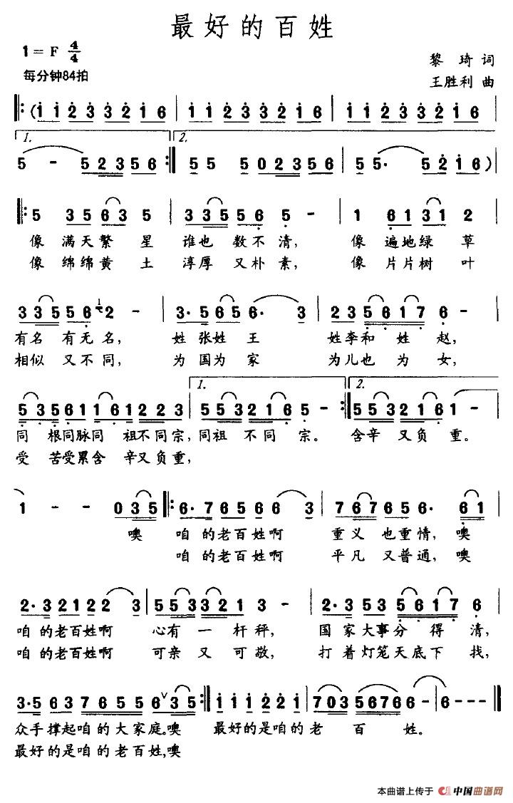 当前位置: 首页 民歌曲谱 五字歌名 最好的百姓