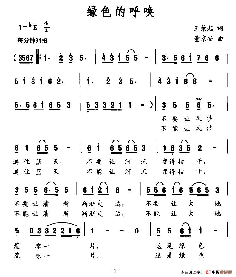绿色的呼唤(王荣起词 董京安曲)(1)_原文件名:绿色的呼唤1.jpg