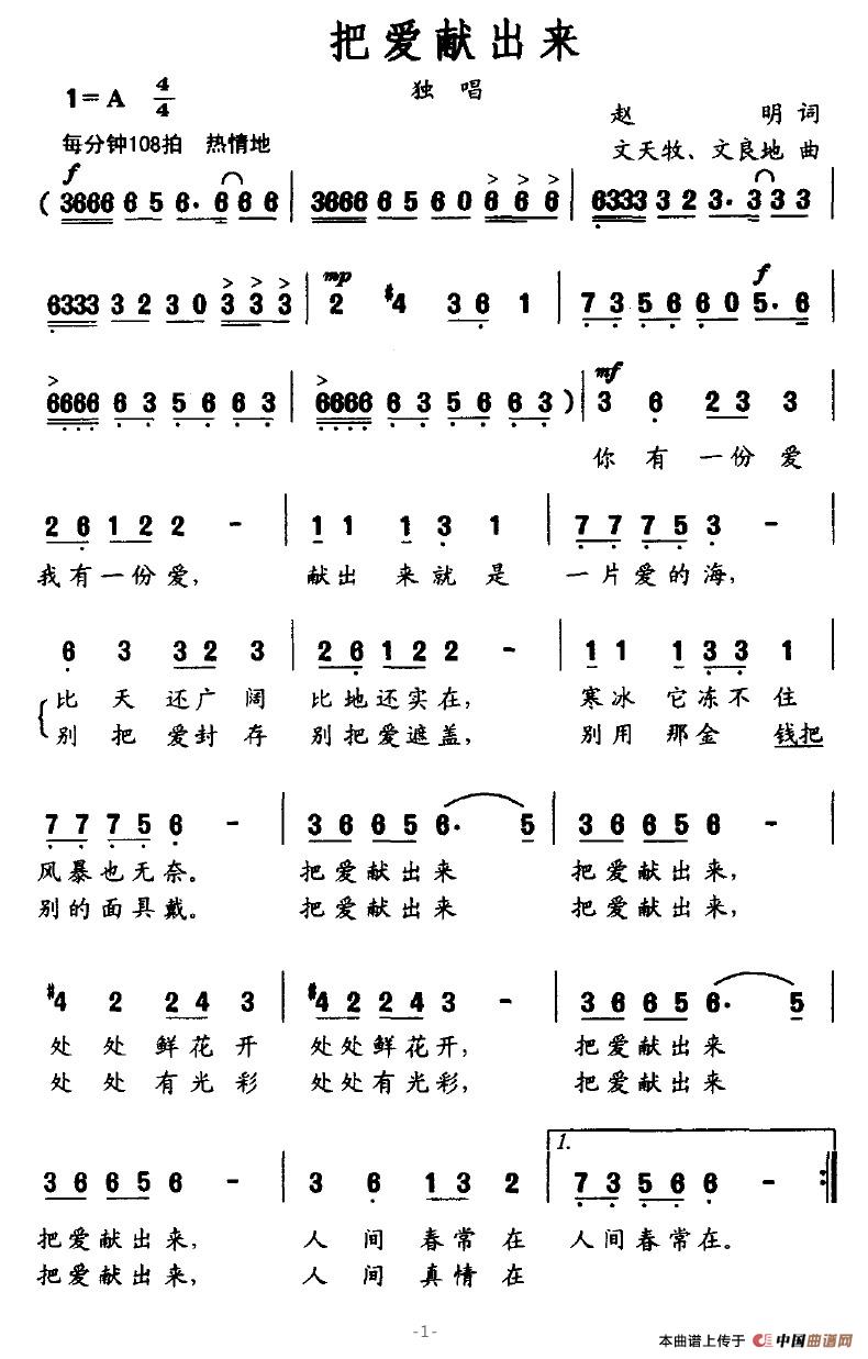 把爱献出来(赵明词 文天牧曲)