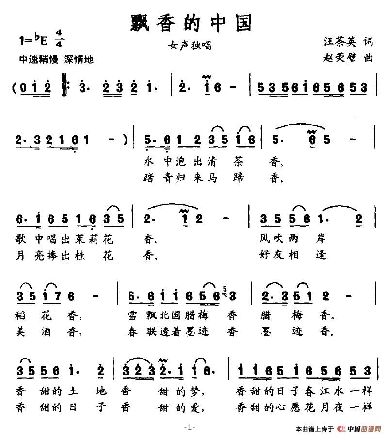 关于《飘香的中国》曲谱的评论