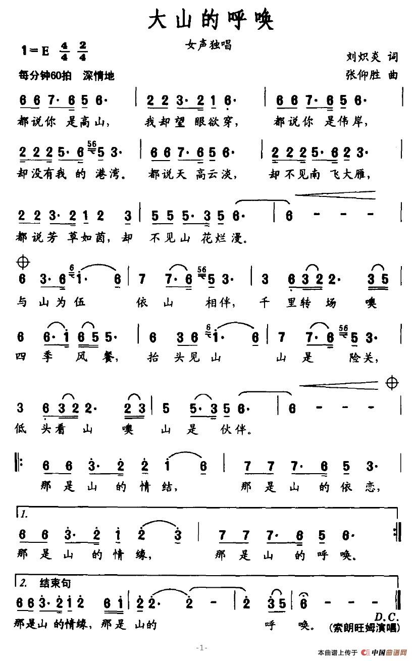 大山的呼唤(刘炽炎词 张仰盛曲)