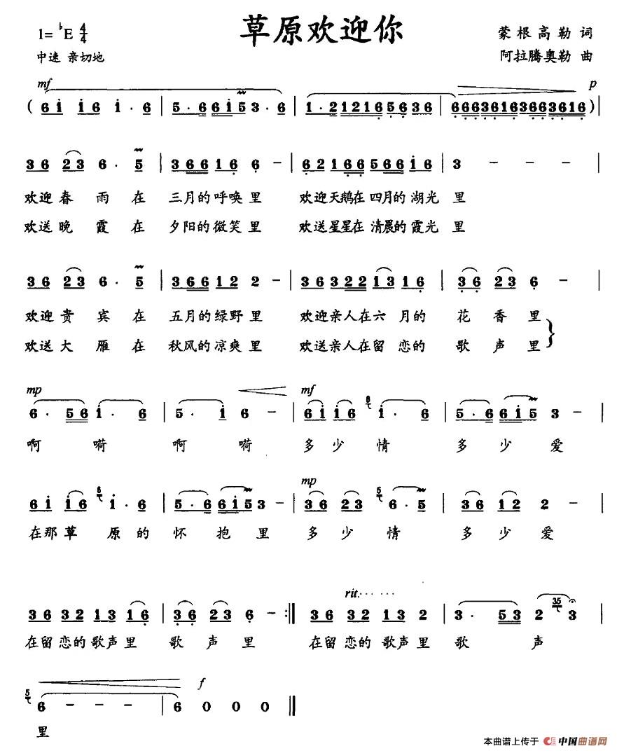 关于《草原欢迎你》曲谱的评论