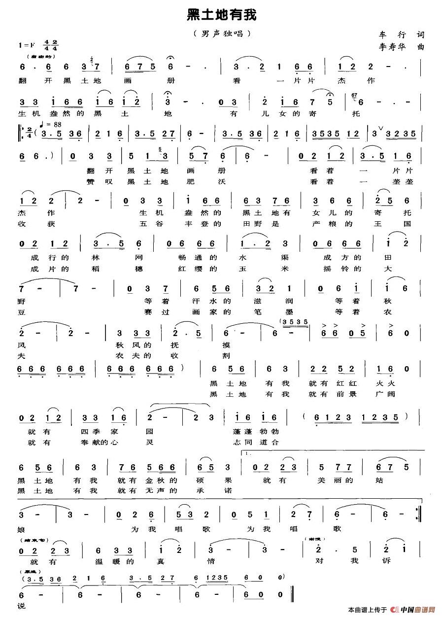 关于《黑土地有我》曲谱的评论