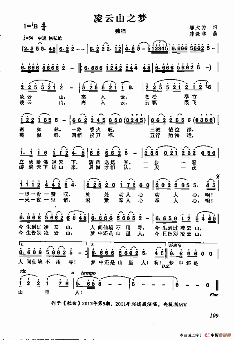 凌云山,高入云,云飘霞飞美似锦。四相祝万福,五行赠鸿运,游遍天下进山来,后悔才相认。