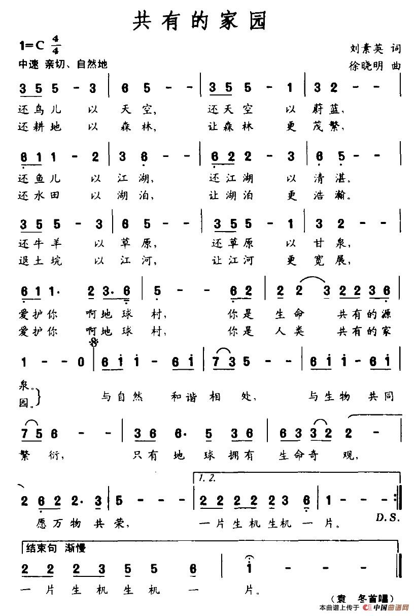 关于《共有的家园》曲谱的评论