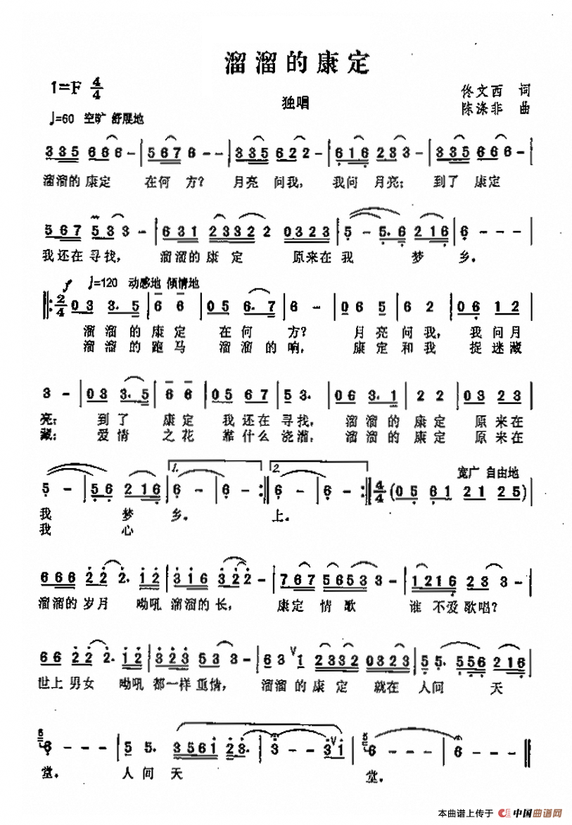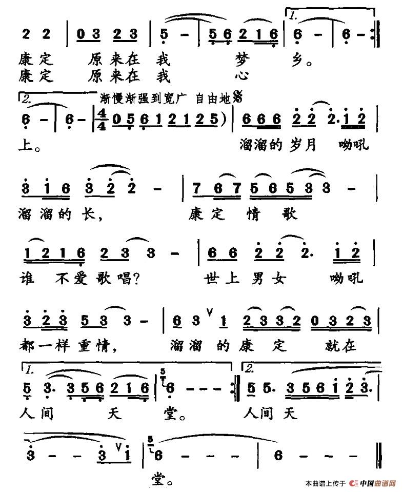 关于《溜溜的康定》曲谱的评论
