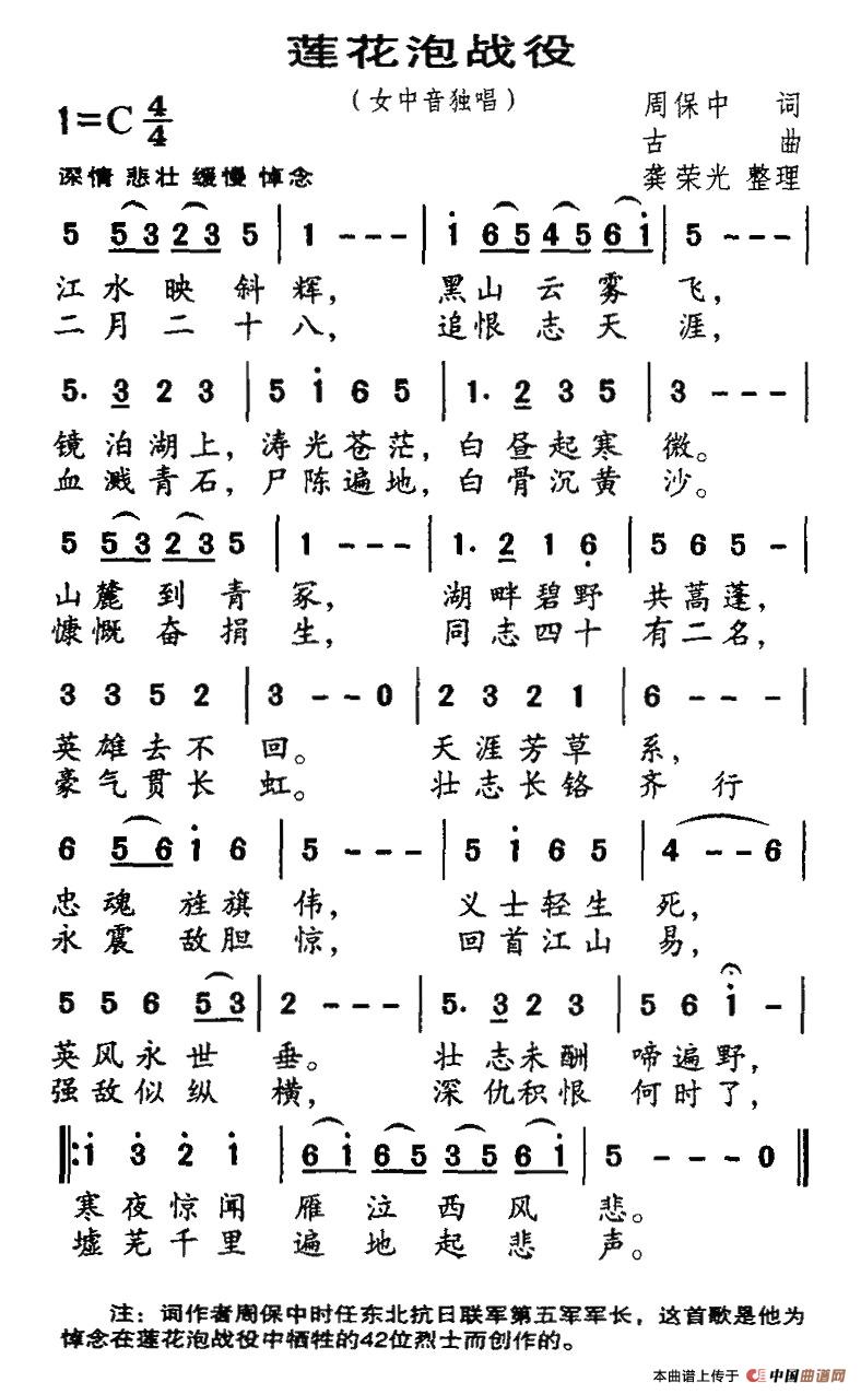 关于《莲花泡战役》曲谱的评论