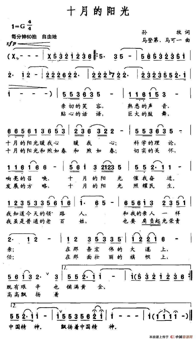 十月的阳光(孙牧词 马登第、马可一曲)(1)_原文件名:十月的阳光.jpg