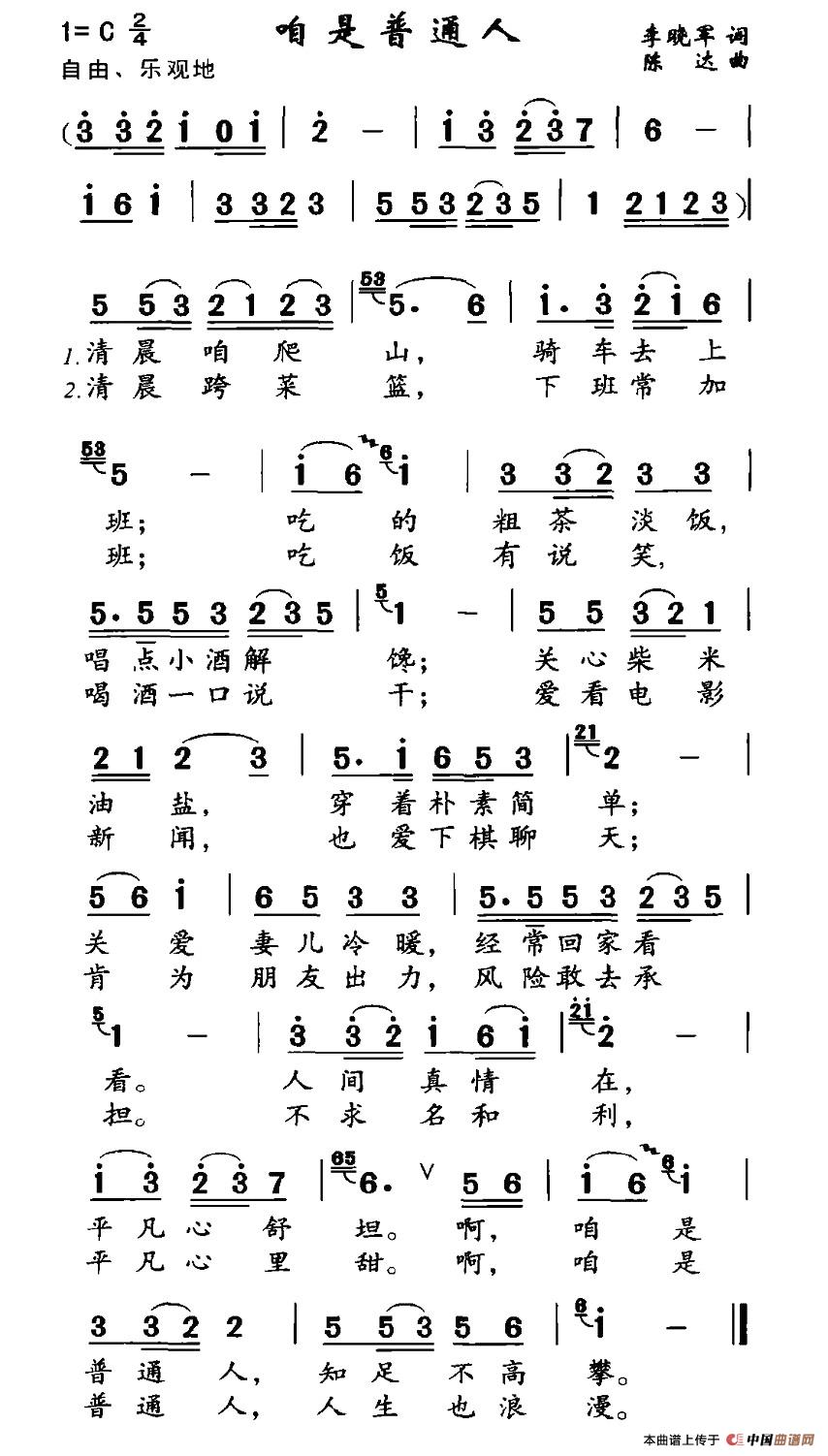 关于《咱是普通人》曲谱的评论