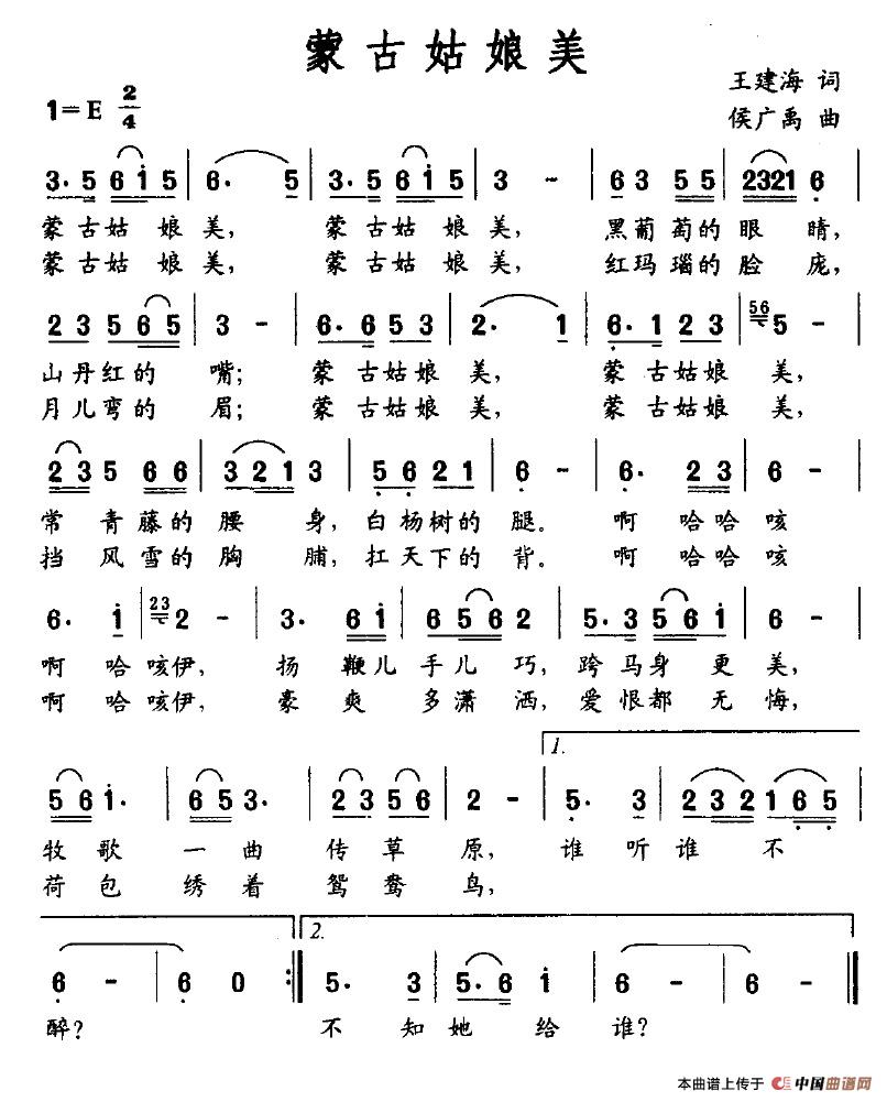 关于《蒙古姑娘美》曲谱的评论