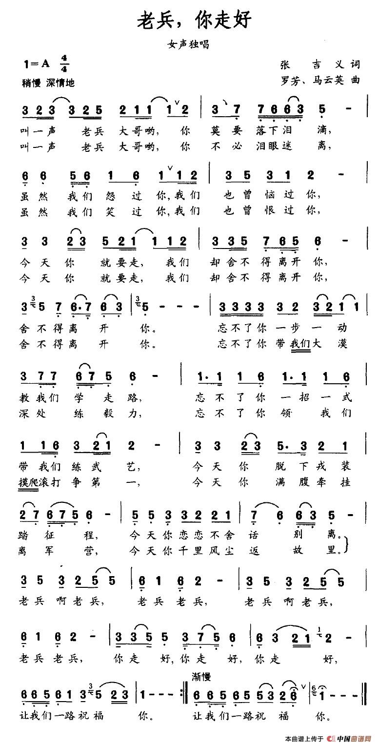 老兵,你走好(张吉义词 罗芳、马云英曲)