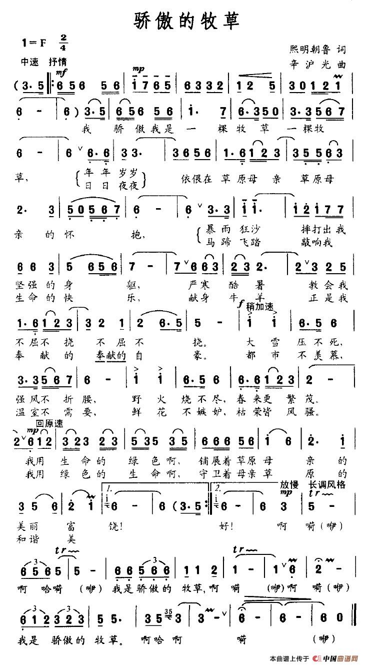 关于《骄傲的牧草》曲谱的评论