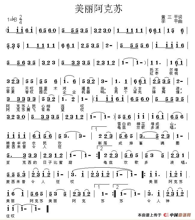 关于《美丽阿克苏》曲谱的评论