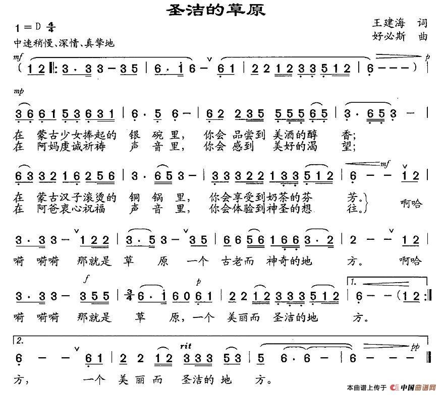 关于《圣洁的草原》曲谱的评论