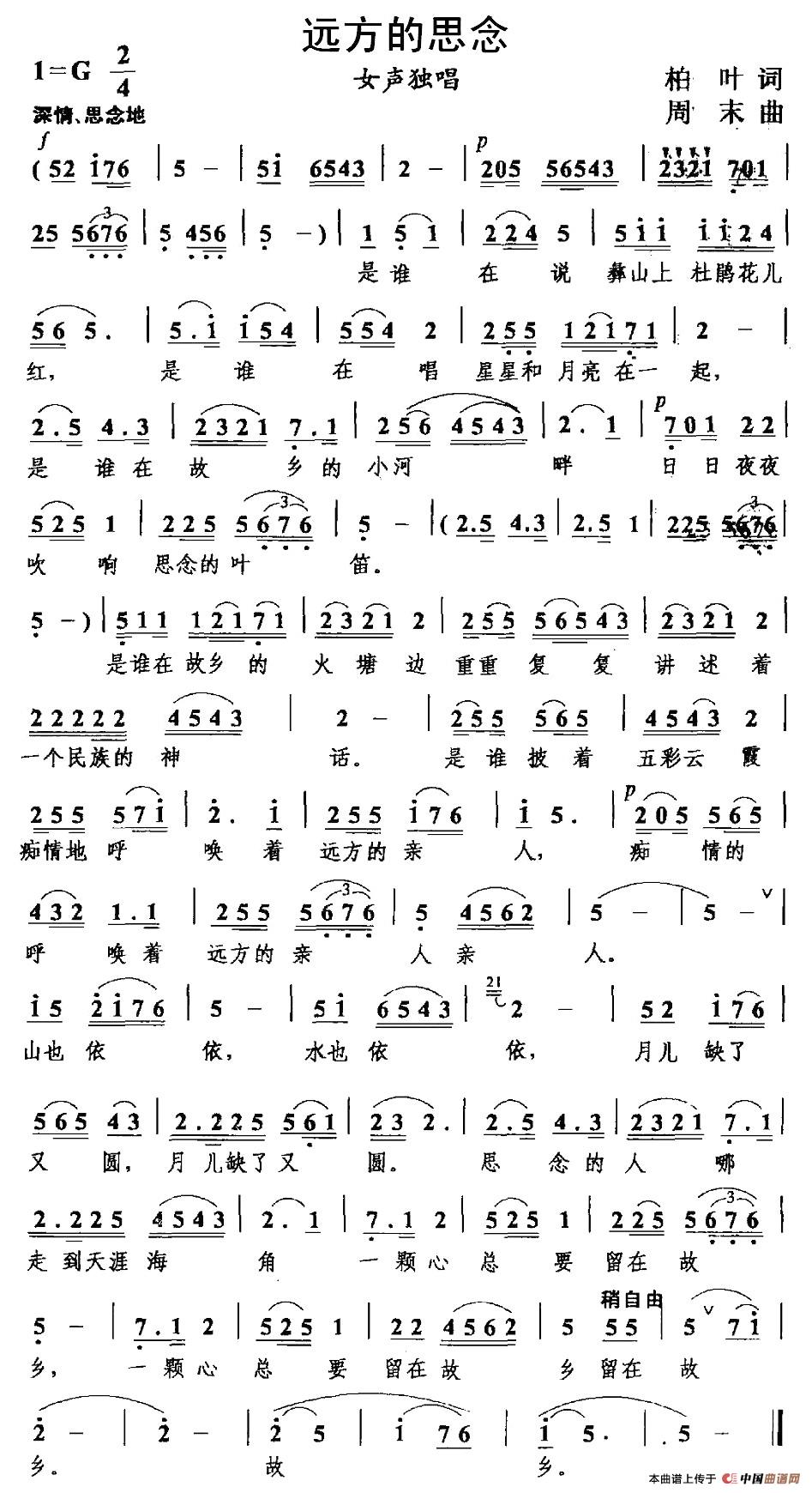 作词:柏叶 作曲:周末 格式:简谱 来源:《中国曲谱网》 上传:秋叶起舞
