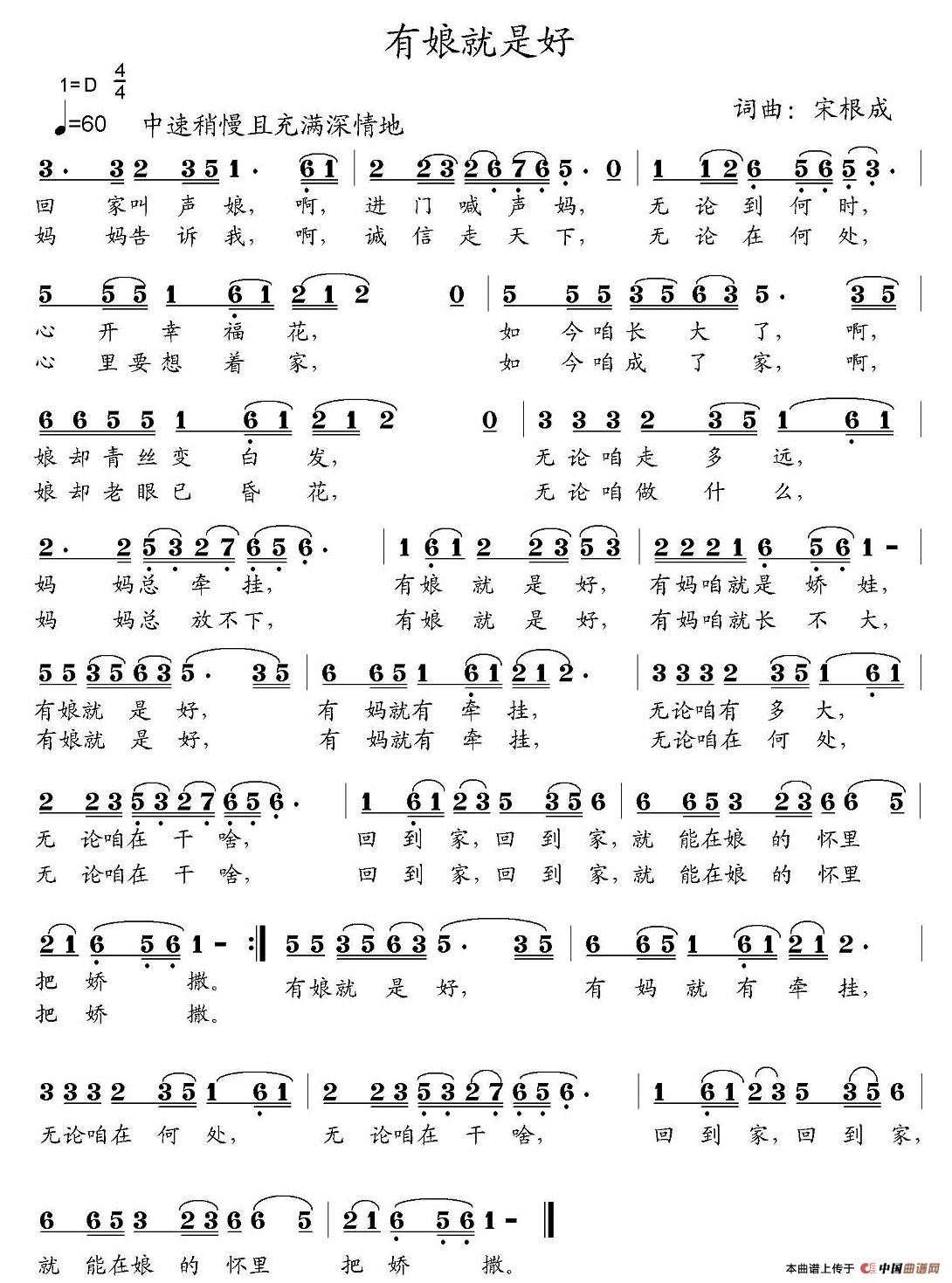关于《有娘就是好》曲谱的评论
