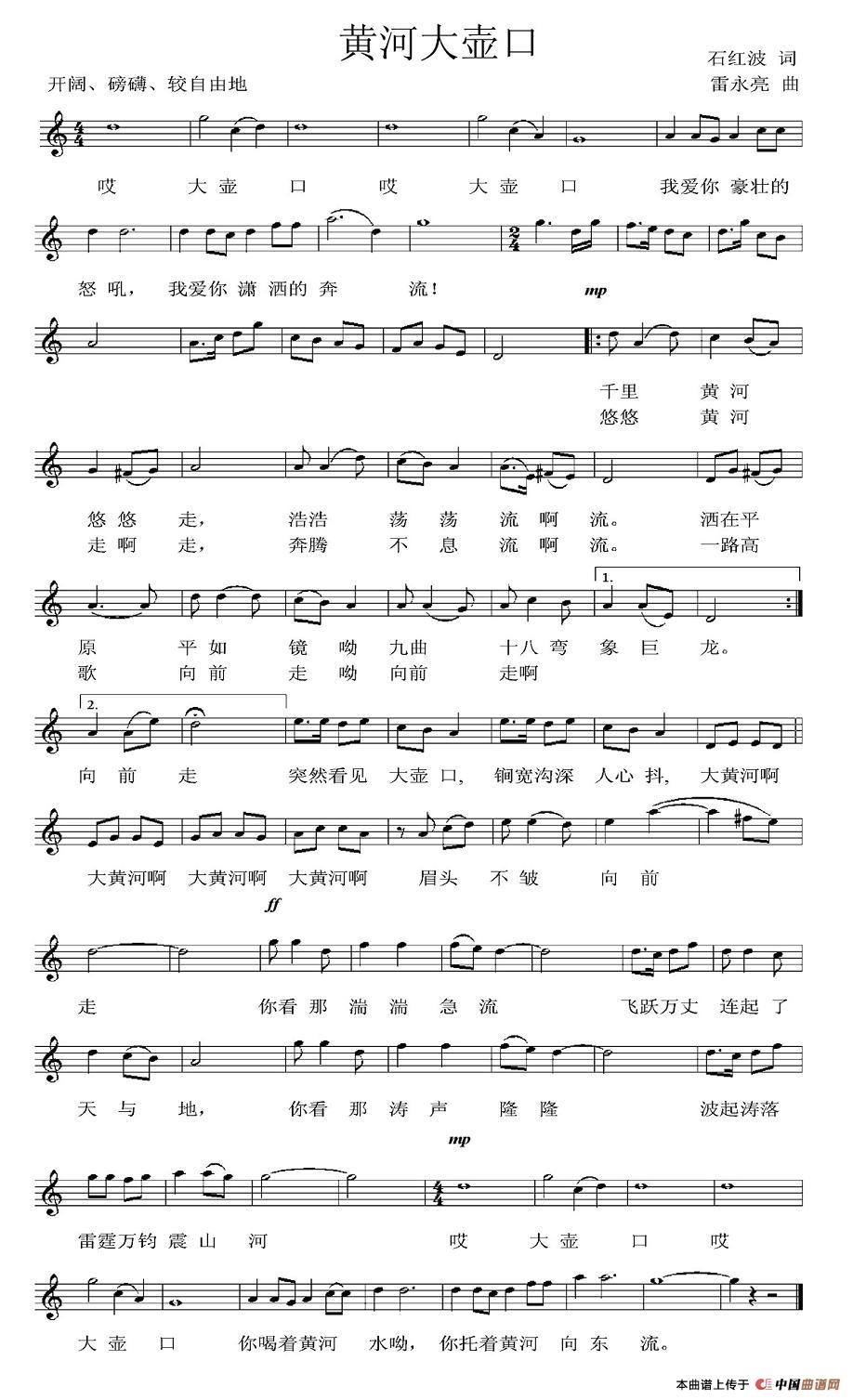 关于《黄河大壶口》曲谱的评论