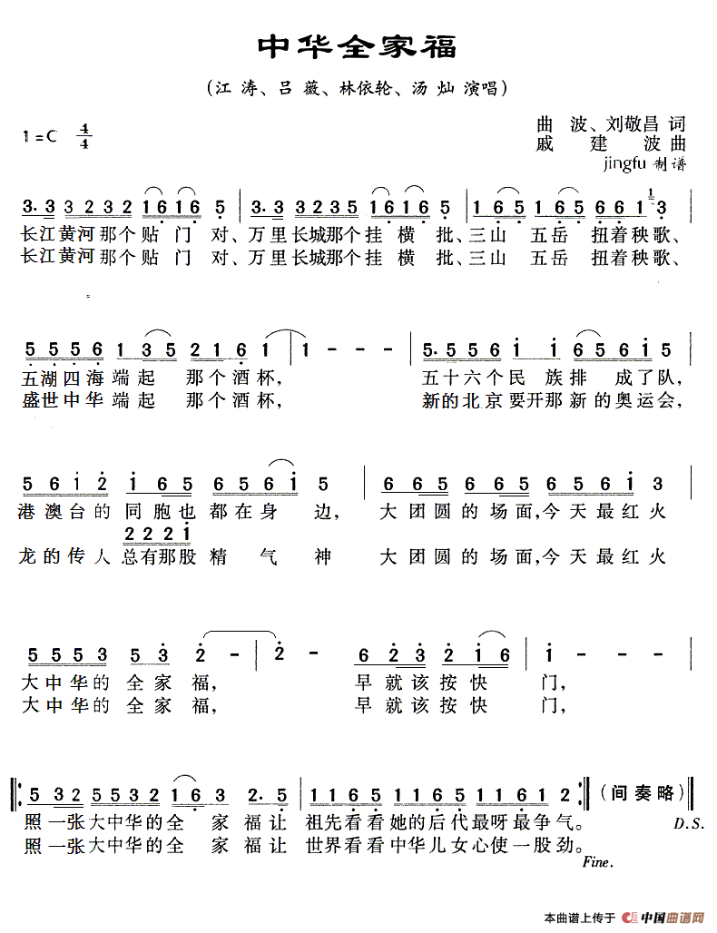 关于《中华全家福》曲谱的评论