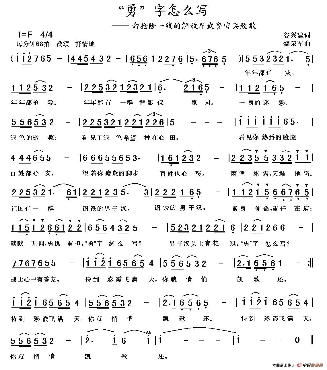关于《“勇”字怎么写》曲谱的评论