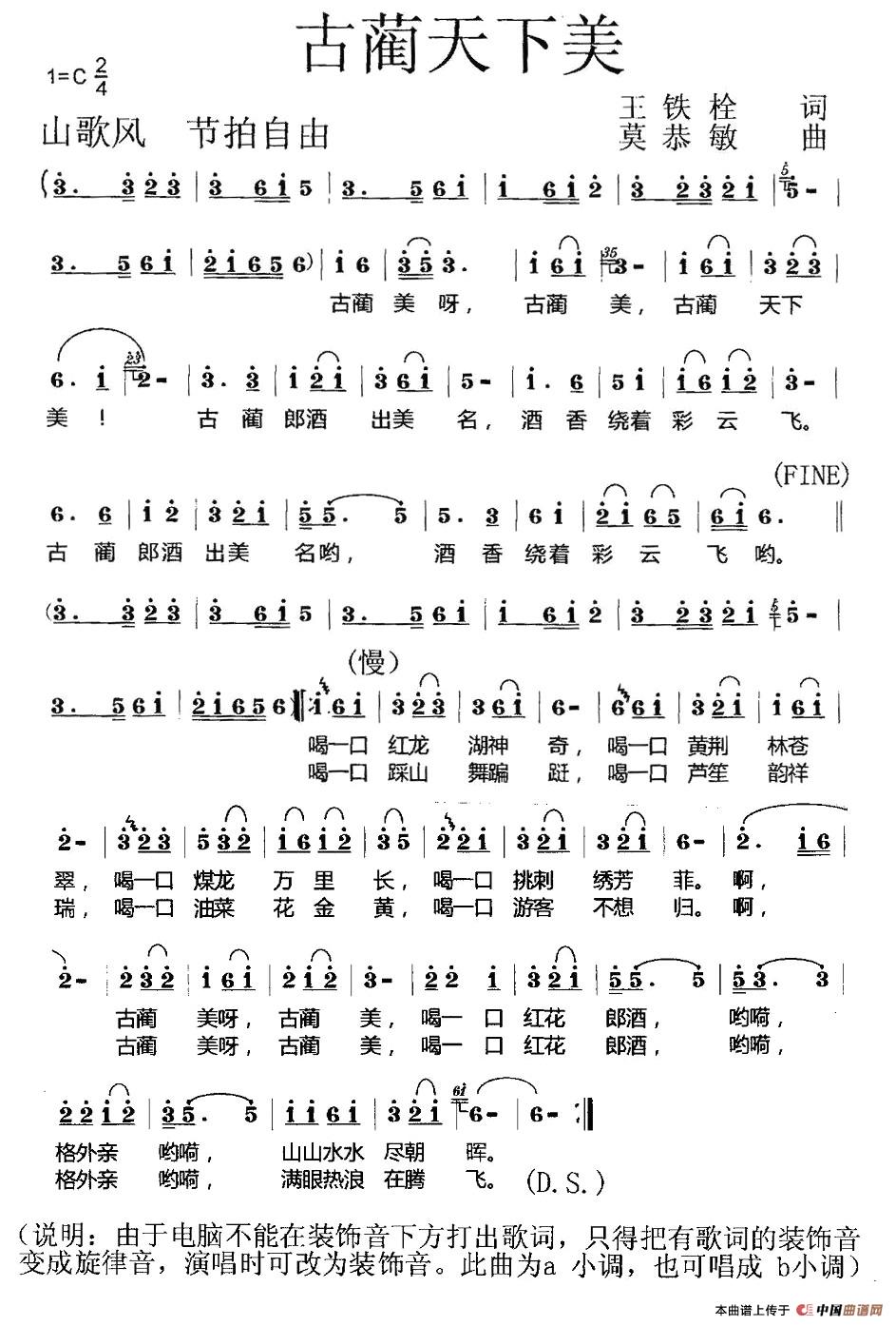 这是为古蔺郎酒谱写的一首颇具山歌风的歌曲。它可以唱得节拍很自由。