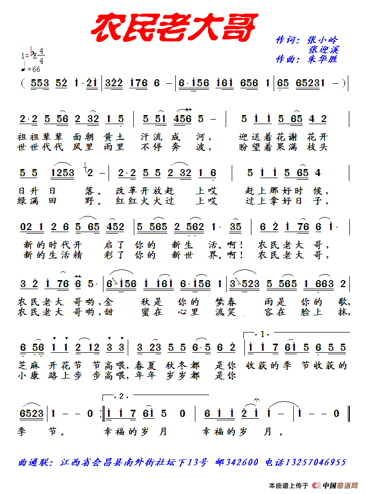 农民老大哥(张小岭 张迎溪词 朱华胜曲)