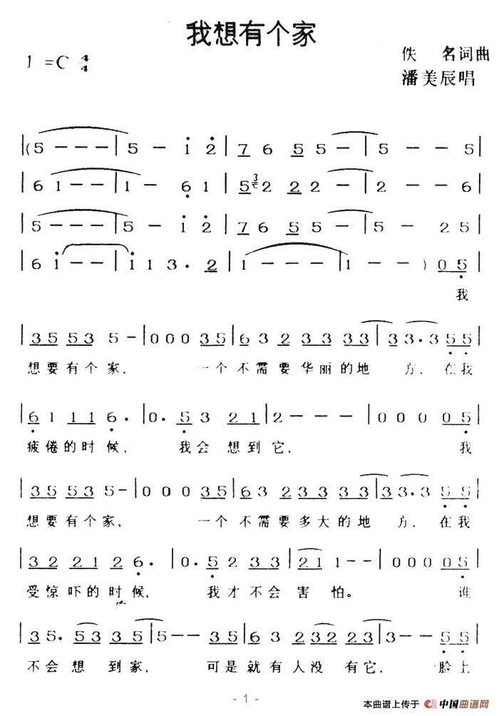 关于《我想有个家》曲谱的评论