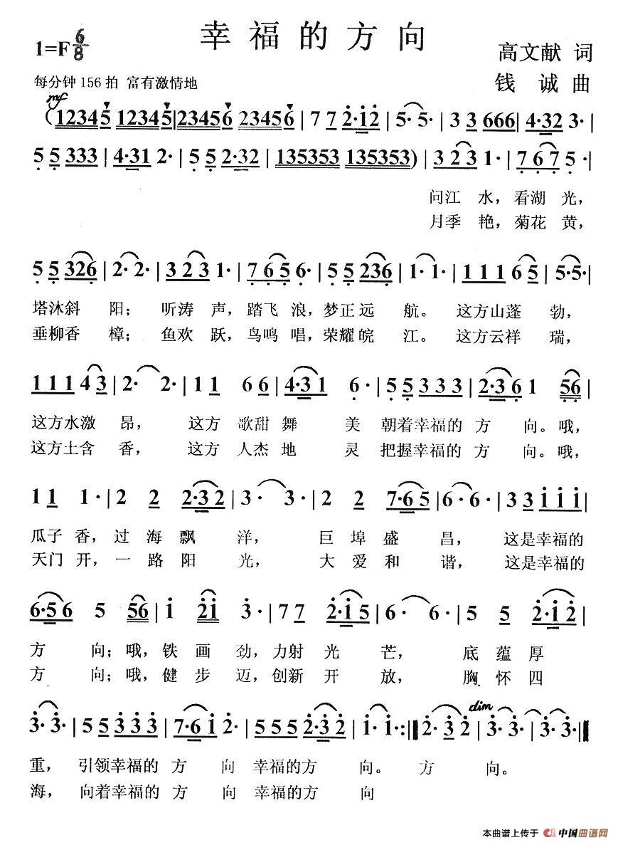 关于《幸福的方向》曲谱的评论