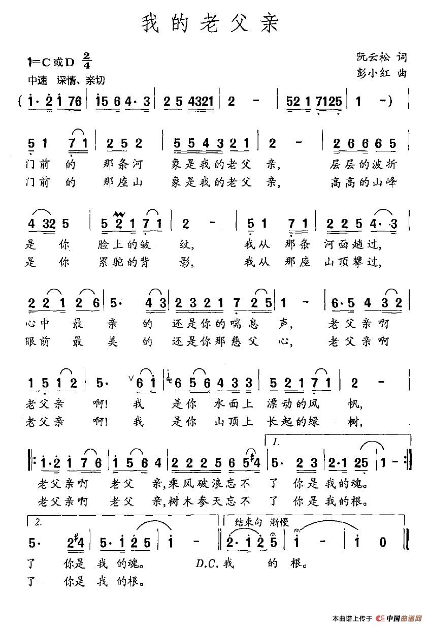 关于《我的老父亲》曲谱的评论