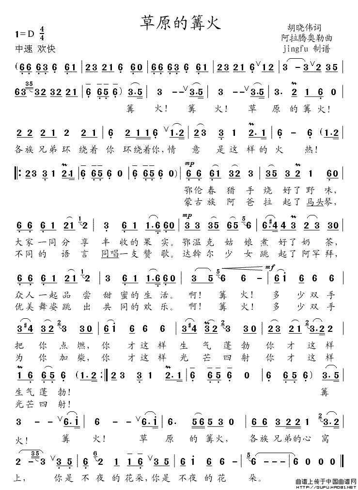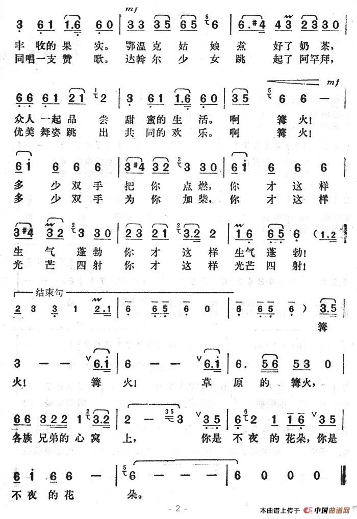 关于《草原的篝火》曲谱的评论