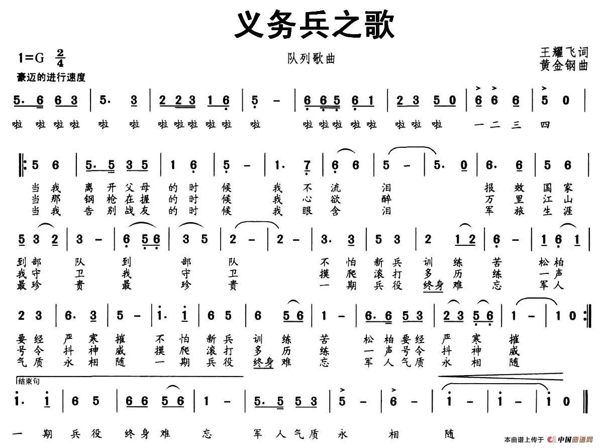 关于《义务兵之歌》曲谱的评论